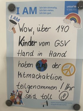 In diesem Jahr hat sich die GSV Hand in Hand am bundesweiten Aktionstag rund um den Internationalen Tag der Kinderrechte beteiligt – und das mit beeindruckendem Engagement: 140 Kinder unserer Schule waren mit dabei!